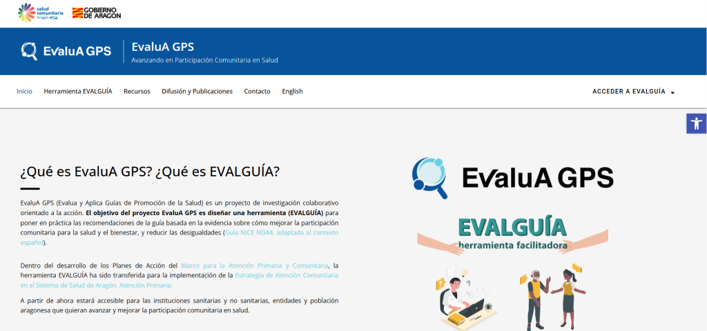 1-TRANSFERENCIA DE LA HERRAMIENTA EVALGUIA y puesta a disposición de Consejos de Salud en su «hoja de ruta» y así ya quedaba disponible también para todas aquellas entidades, instituciones, grupos, asociaciones.. que pudieran realizar proyectos de promoción de salud en un futuro en Aragón. Se ofrecia así una herramienta científica tecnológica a la población aragonesa.