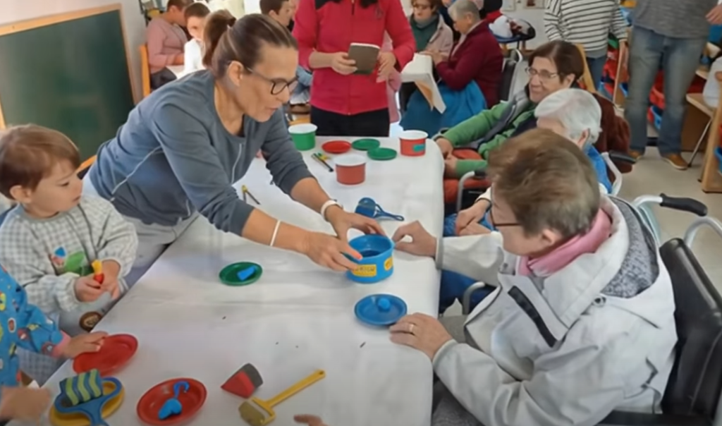 «Compartiendo nuestro tiempo» es un programa intergeneracional del sector de Barbastro, que, por ejemplo, no solo incluye visita de los escolares a una residencia de mayores, sino que los mayores también acuden a los centros escolares para participar en talleres y dinámicas educativas. Clica sobre la imagen para ver el vídeo breve del proyecto y conocer más sobre el mismo.