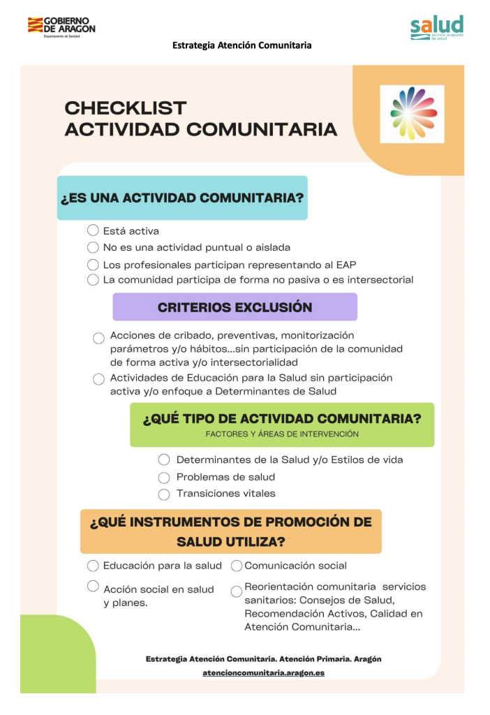 Definición de actividad comunitaria de la Estrategia de Atención Comunitaria en Atención Primaria de Aragón